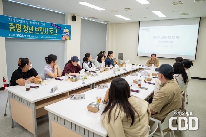 충북 증평군은 23일 인삼문화센터에서 지역 청년 12명과 함께 ‘청년 브릿지 토크(Bridge Talk)’를 열고 청년과 지역사회의 상생 방안을 모색했다.