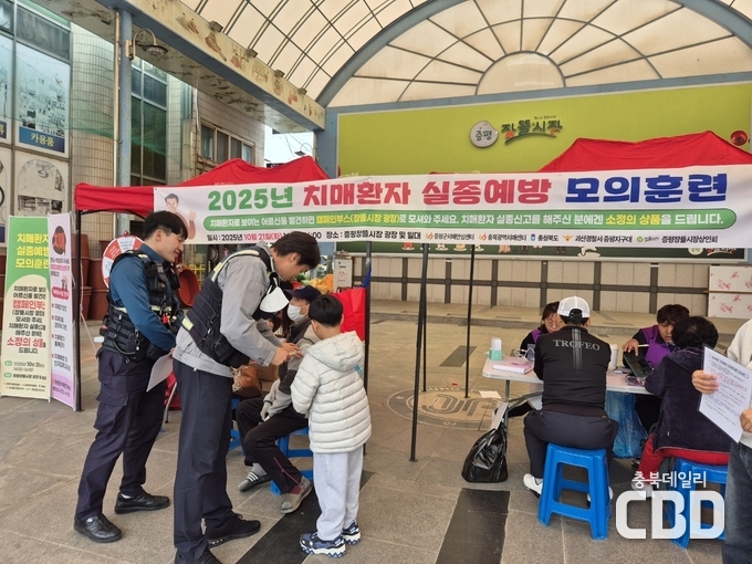 충북 증평군치매안심센터는 21일 증평장뜰시장 일대에서 치매환자 실종을 예방하고 신속 대응 역량을 높이기 위한 치매환자 실종 예방 모의 훈련을 실시했다.