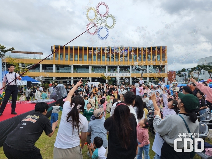 체험존에서는 △페이스페인팅 △풍선아트 △민속놀이(투호·공기놀이·제기차기·굴렁쇠)와 함께 △청주시육아종합지원센터의 아동 만들기 체험 △드림스타트의 키링 만들기 △비눗방울 체험 등 다채로운 프로그램이 진행됐다.