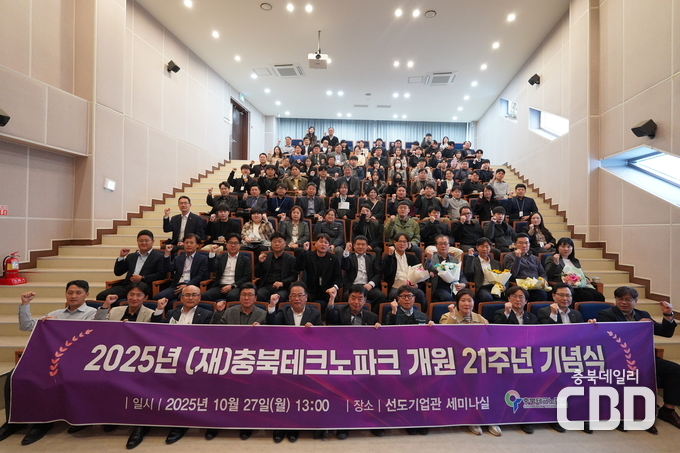 (재)충북테크노파크(원장 박순기, 이하 충북TP)는 10월 27일 개원 21주년을 맞아 충북TP 선도기업관 세미나실에서 기념식을 개최했다.