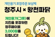 【2025. 9. 30.(화)] 내 용 담 당 부 서 사진 영상 ∙ 청주시, 전국 최초 개인용기 포장주문 보상제 도입 - 청주 왕천파닭 28개소서 시행… 새로고침 인증시 청주페이 3천원 지급 자원정책과 O O ∙ (16시 엠바고) 청주시, ‘2025 전국 지자체 일자리대상’ 최우수상 수상 - 시 일자리 사업, 목표 공시제 부문… 6년 연속 쾌거 경제일자리과 O - ∙ 청주시 오창읍, 옥산면 다목적회관 신축사업 본격 추진 - 주민 복지·문화공간 확충 기대 공공시설과 - - ∙ 청주시 스마트그린산단에 ‘반도체‧IT 소부장 지원센터’ 개소 미래산업과 O - ∙ 농협 재경청우회‧청주시지부, 청주시에 연이어 고향사랑 기부 자치행정과 O