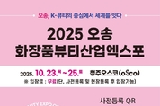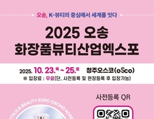 2025 오송화장품뷰티산업엑스포, 손님맞이 준비 완료 - 10.23.(목)~10.25.(토) 3일간 청주오스코(OSCO)서 개최 - ‘오송, K-뷰티의 중심에서 세계를 잇다’를 주제로 개최되는 ‘2025 오송화장품뷰티산업엑스포’ 행사가 10월 23일(목)부터 25일(토)까지 3일간 청주오스코(OSCO)에서 개최된다. 충청북도와 청주시가 공동 주최하고 (재)오송바이오진흥재단이 주관한다. 이번 엑스포에는 작년도보다 50% 증가한 국내·외 230여 개 화장품 기업이 참가해 스킨케어, 메이크업, 기능성 화장품, 뷰티 디바이스 등 다양한 최신 제품과 기술을 선보인다. 아모레퍼시픽, 셀트리온스킨큐어 같은 국내 대표 기업뿐 아니라, 독일, 중국, 불가리아 등의 해외 6개 업체도 참가할 예정이다. 실내 전문전시관에서 개최되는 만큼 관람객 편의시설도 확대되었다. 청주오스코 내 주차 공간은 991면으로 실내‧외 유료주차가 가능하고, 대중교통 이용자를 위해 오송역(3번 출구 맞은편 버스충전소)에서 행사장까지 20분 간격으로 셔틀버스도 운행한다. 또한 식약처 인근에 임시주차장을 마련하여 이용 편의를 제고했다. 특히, 올해에는 K-뷰티 인기와 더불어 다양한 수출판로를 확대할 수 있