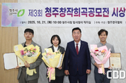청주시, 제3회 창작희곡 공모전 당선작 시상식 개최 - 대상 이홍이 작가 ‘모스크바의 바다’… 상금 1,500만원 수여 - 청주시가 후원하고 (사)청주연극협회가 주최‧주관한 제3회 청주 창작희곡 공모전 시상식이 21일 임시청사 직지실에서 개최됐다. 이번 공모전은 한국 연극계의 새로운 목소리를 발굴하고 창작희곡의 활성화를 도모하기 위해 마련됐으며, 전국에서 다양한 소재와 형식을 담은 77편의 작품이 출품되는 등 뜨거운 관심을 모았다. 심사는 연출가, 극작가 등 연극 전문인으로 구성된 심사위원단이 맡아 작품의 완성도, 독창성, 실연성의 3개 항목에 대한 심사를 진행해 최종 3개의 작품을 선정했다. 최종 선정된 작품은 독창성이 높고 무대화의 가능성이 높다고 평가된 작품으로 대상(상금 1,500만원)은 이홍이 작가의 ‘모스크바의 바다’, 최우수상(상금 1,000만원)은 노동훈 작가의 ‘고민수의 변수 통제 시뮬레이션’, 우수상(상금 500만원)은 서준교 작가의 ‘다이치’에 영광이 돌아갔다. 수상작들은 저작권 계약을 맺고 청주 극단에 공연 제작 우선권을 지원하게 된다. 상을 수여한 이범석 청주시장은 “창작희곡은 한국 연극의 뿌리를 지