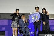 특수교육원, 자체제작 영화 부산국제장애인인권영화제 금상 수상해 - 도내 청소년 배우들이 함께 빚어낸 교육영화, 빛을 발하다 - 충청북도교육청 직속기관 특수교육원(원장 최명옥)은 16일(목), 자체제작한 교육영화 <숨은 영웅: 데미안>이 부산국제장애인인권영화제에서 금상을 수상했다고 밝혔다. 청소년 성장 및 장애공감 교육 영화 장르로 제작된 이 영화는 지난 9월에 예선을 통과해 본선에 올랐으며, 13일(월) 개막식을 시작으로 영화제에서 공식 상영되었다. 총 29편의 예선작 중 5편이 본선에 진출했으며, 최종 결과는 2차 심사점수와 관객투표점수를 합산해 15일(수) 폐막식에서 대상, 금상, 은상과 동상 2팀 등 총 5팀이 선정되었다. 충북 도내 청소년 배우들이 출연해 교육영화로서의 진정성을 더한 <숨은 영웅: 데미안>은 중학교 3학년 민서가 청각장애 학생 서연, 자폐 스펙트럼 학생 윤성과 한 팀을 이루며 겪는 갈등과 성장을 담았다. 처음에는 소통조차 어려워 답답하고 힘든 시간을 보내지만, 점차 서로의 다름을 이해하게 된다. 발표 준비 과정에서 발생한 위기를 함께 극복하며, 결국 다르다고 해서 함께할 수 없는 것이 아니라, 함께하면서 배우고 성
