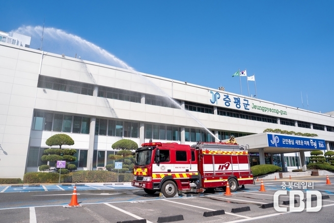충북 증평군은 31일 군청 광장에서 화재 등 증평소방서 중앙119안전센터와 연계한 합동소방훈련을 실시했다고 밝혔다.