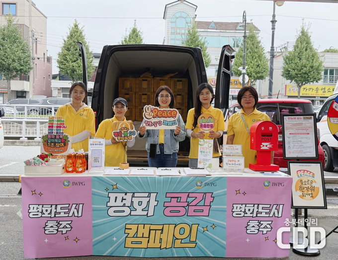 ㈔세계여성평화그룹(IWPG) 충주지부(지부장 이명옥)가 30일 충주 풍물시장에서 ‘평화도시 충주, 평화 공감’ 캠페인을 진행했다.