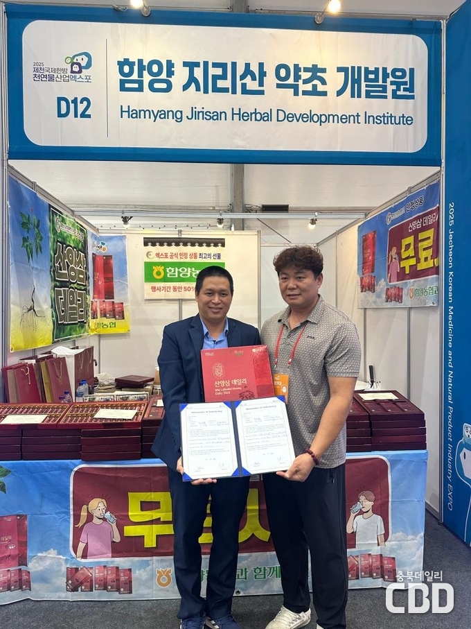 경남 함양농협에서 운영하는 지리산약초개발원이 2025제천국제한방천연물산업엑스포에서 해외 기업과 연달아 수출협약을 체결하며 주목받고 있다.