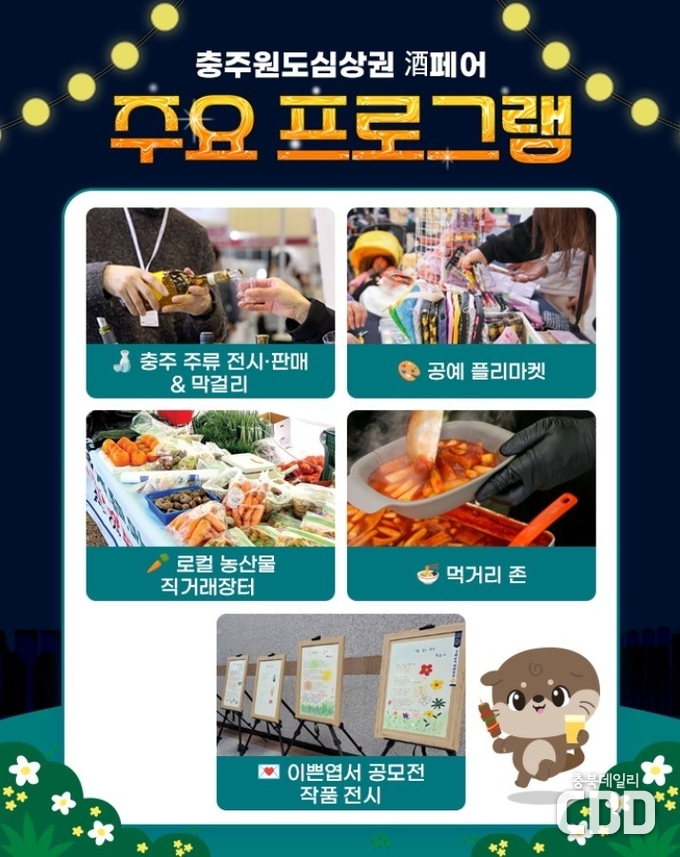 행사장에는 △충주에서 생산되는 주류 전시 및 판매 △시음·체험 부스 △공연 △라이브 커머스 등 다채로운 프로그램이 마련돼 시민들에게 풍성한 먹거리, 볼거리, 즐길 거리를 제공할 예정이다.