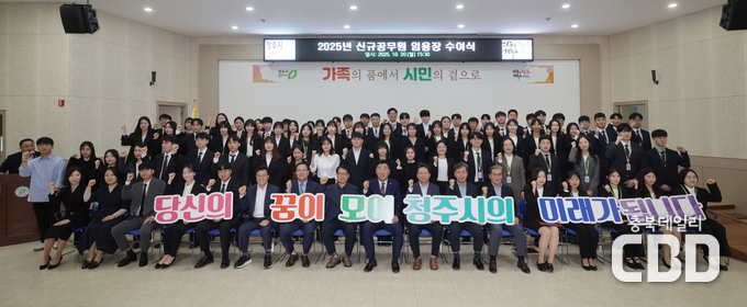 이 시장은 “오늘의 주인공은 신규공무원 여러분이지만, 이 자리를 함께해주신 가족분들이야말로 진정한 동반자이자 버팀목”이라며 “청주시민들의 행복을 최우선으로 하는 열정 있고 따뜻한 공직자가 되어달라”고 당부했다.