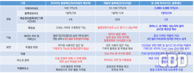 특히 이번에 개발된 하이브리드 블록체인은 기존 블록체인 대비 속도, 효율성, 보안성, 확장성 측면에서 뚜렷한 경쟁 우위를 확보했다. 이러한 기술적 차별성은 충북형 블록체인이 국내외 시장에서 경쟁력을 갖춘 차세대 공공 블록체인 기술로 자리매김할 수 있는 핵심 요인으로 평가된다.