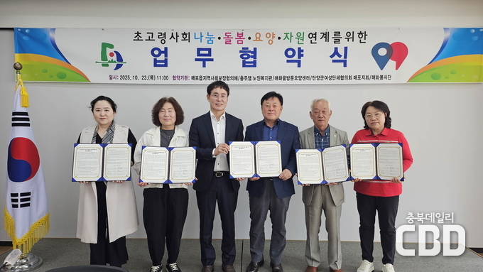 충북 단양군 매포읍은 지난 23일, 지역 복지 발전과 복지 자원의 체계적 연계를 위해 ‘초고령사회 나눔·요양·돌봄 자원연계 업무협약식’을 개최했다고 밝혔다.