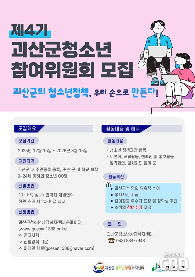 ▣ 괴산군청소년상담복지센터, 제4기 청소년참여위원회 위원 모집