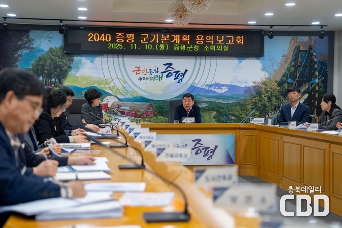 충북 증평군은 10일 군청 소회의실에서 ‘2040 증평 군기본계획 수립 용역보고회’를 개최했다.