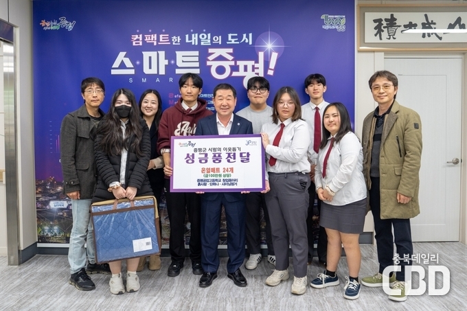 충북 증평군은 11일 증평공업고등학교 창업동아리 학생들이 군청을 방문해 온열매트 싱글사이즈 24개(100만원 상당)를 전달했다고 밝혔다.