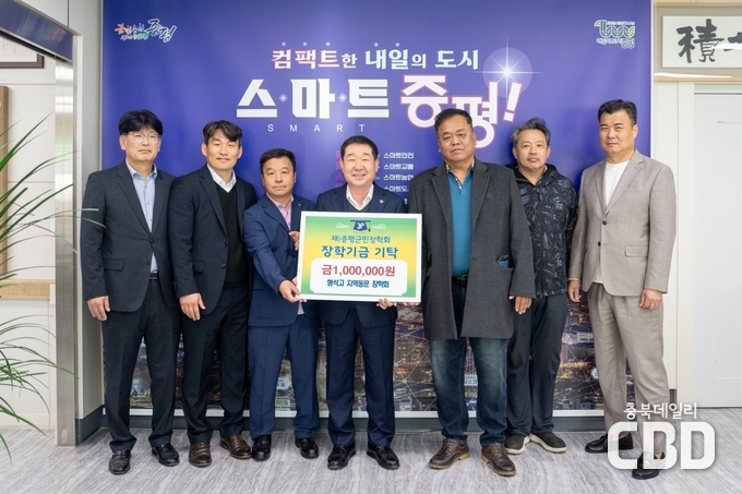 충북 증평군은 11일 형석고 지역동문 장학회(회장 최명호)가 군청을 찾아 지역의 우수 인재 양성을 위해 써달라며 (재)증평군민장학회(이사장 이재영 증평군수)에 장학금 100만원을 기탁했다고 밝혔다.