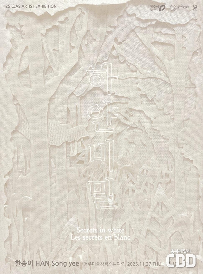 2025 청주미술창작스튜디오 릴레이 프로젝트 개인전 청주미술창작스튜디오는 19기 입주작가 14명이 입주기간 내에 제작한 창작 성과물을 전시로 선보이는 릴레이 프로젝트를 2025년 7월 31일부터 12월 31일까지 7회차로 나누어 진행한다. 본 전시는 릴레이 개인전 6회차로 한송이 작가의 전시《하얀 비밀》이다. [작가소개] 한송이는 비밀과 상처 등 지극히 개인적인 이야기들을 암호화하여 표현하는 작업을 하고 있으며 이는 본인이 가지고 있는 문제로부터 스스로를 치유하기 위해 시작되어 자기 치유적 미술, 고백 미술의 형태를 띠고 있다. 회화, 사진, 비디오, 사운드, 설치 등 다양한 매체를 넘나들며 치유의 경험을 관객과 공유하기 위한 관객 참여미술도 선보이고 있다.