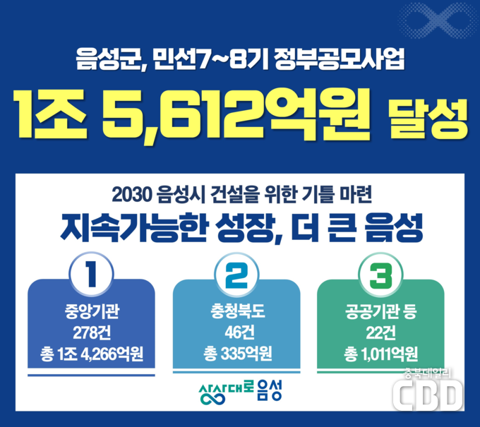 1. 음성군, 민선 7기 이후 공모사업 1조 5612억원 확보...미래 성장 동력 마련