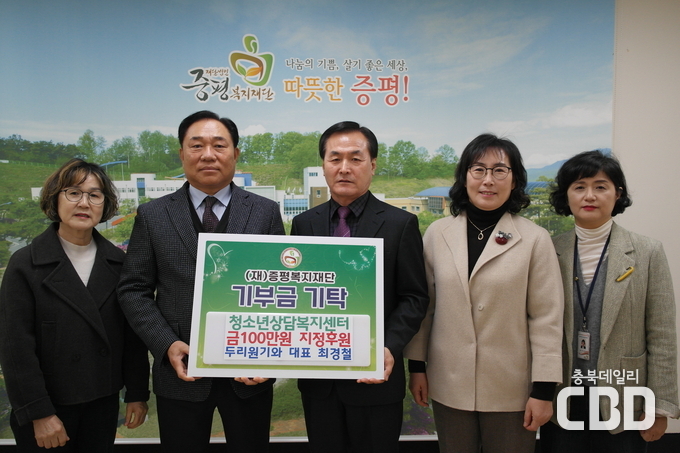 충북 증평복지재단(이사장 신연택)은 16일 증평 위치한 두리원기와 최경철 대표가 재단에 100만 원을 지정 기탁했다고 밝혔다.