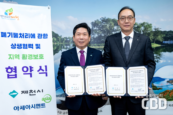제천시와 아세아시멘트(주)제천은 13일 제천시청에서 ‘폐기물 처리에 관한 상생협력 및 지역 환경보호 협약’을 체결했다. 이번 협약은 수도권 종량제 생활폐기물의 제천시 반입을 차단하고 지역 환경 보호를 강화하기 위해 마련됐다.