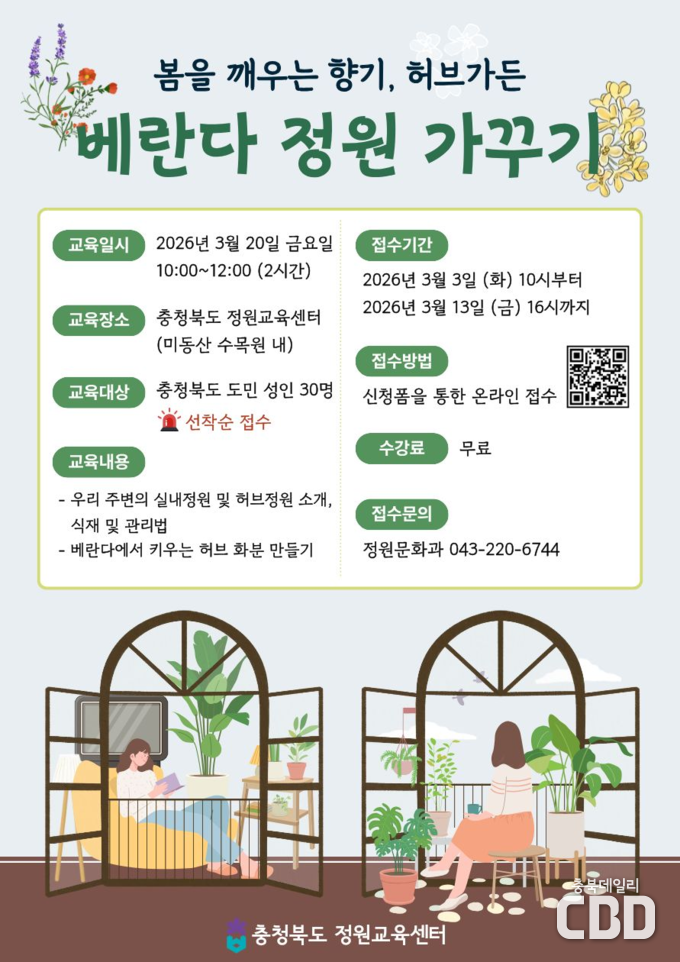 - 충청북도 정원교육센터, 3월 3일부터 접수 시작 -
