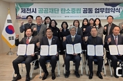제천시 4대 재단, 탄소중립 실현 위해 손 맞잡다 제천시탄소중립지원센터(센터장 이응직)는 11월 11일 제천시평생학습관에서 제천시인재육성재단, 제천한방천연물산업진흥재단, 제천문화재단, 제천복지재단 등 4개 공공재단과 ‘제천시 탄소중립 거버넌스 협력 기반 조성을 위한 업무제휴 협약’을 체결했다. 협약 기관들은 △탄소중립 및 기후위기 대응 프로그램 공동 기획·운영 △시민 대상 교육·홍보 및 참여 프로그램 개발 △지속가능발전 정책·연구 협력 △기타 공동사업 추진 등에서 협력하기로 했다. 또한 기관 간 실무협의회를 구성해 협약의 실행력을 높이고, 행정적·재정적 지원을 통해 지속 가능한 협력 체계를 구축할 계획이다. 제천시탄소중립지원센터 이응직 센터장은 “이번 협약은 제천시 주요 공공재단이 탄소중립이라는 공통 목표 아래 협력의 첫걸음을 뗀 뜻깊은 자리”라며, “시민이 체감할 수 있는 지역 탄소중립 거버넌스 모델을 만들어가겠다”고 말했다. 이번 협약은 제천시가 추진하는 탄소중립 도시 실현 및 사회적 가치 중심의 지역 거버넌스 강화 전략의 일환으로, 공공기관 협력을 통한 지속 가능발전의 기반을 마련했다는 점에서 의미가 크다. 한편, 기타 자세한 내용은 제천시청 자연환경과