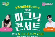 【2026. 4. 11.(토)] 내 용 해 당 부 서 사진 영상 ∙ 청주시, 어린이집 노인시설 246개소에 방연마스크 지원 - 안전취약계층 보호 강화 목표… 예방 중심 안전 정책 지속 안전정책과 - - ∙ 청주시, ‘2026년 여성친화기업’ 참여기업 모집 - 여성 근로환경 개선 기업에 다양한 인센티브 제공… 5월 7일까지 접수 여성가족과 - - 【2026. 4. 12.(일)] 내 용 해 당 부 서 사진 영상 ∙ 청주의 봄밤 수놓을 ‘피크닉 콘서트’ 5월 1~3일 개최 - 문화제조창 잔디광장서 청주시립예술단·뮤지컬·대중음악 한자리 문예운영과 O - ∙ 청주시 정수장, 기후부 점검 결과 위생관리 ‘양호’ - 지북·낭성·미원정수장 전반적 기준 충족… 위생안전 인증도 추진