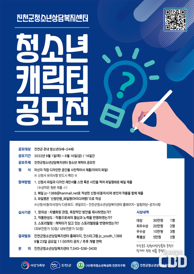 1. 진천군청소년상담복지센터, 청소년 캐릭터 공모전 신청자 모집