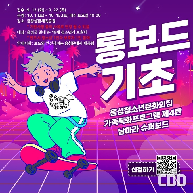 음성청소년문화의집(평생학습과장 채수찬, 이하 음청문)은 보드를 활용한 가족프로그램 ‘날아라 슈퍼보드’ 프로그램을 운영한다.