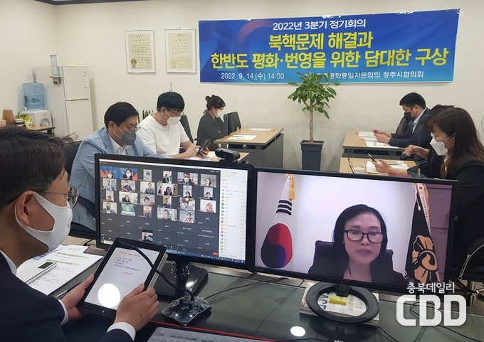 민주평화통일자문회의 청주시협의회(회장 김영옥)가 14일 청주시협의회 사무실에서 온라인을 병행해 김영옥 협의회장을 비롯한 자문위원 90여 명이 참석한 가운데 2022년 3분기 정기회의를 개최했다.