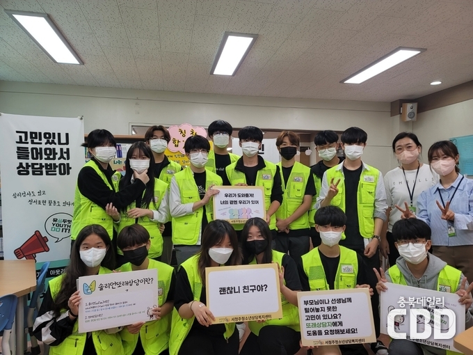 한편 서청주청소년상담복지센터는 청소년복지지원법 29조에 근거한 청소년상담전문기관으로 청주시 흥덕구‧청원구에 거주하고 있는 9세에서 24세의 청소년과 가족이라면 청소년 전화 1388과 센터의 다양한 상담서비스를 제공받을 수 있다.(043-297-1388)