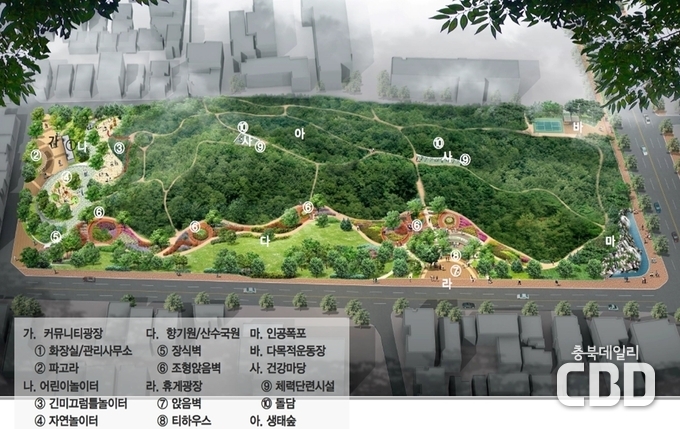 대상지는 흥덕구 복대동 복대근린공원, 청원구 사천동 사천근린공원, 청원구 내수읍 내수중앙 근린공원, 상당구 미원면 숲울림 문화공원이며, 3억 7천만 원을 투입해 올해 말까지 용역을 완료할 예정이다.