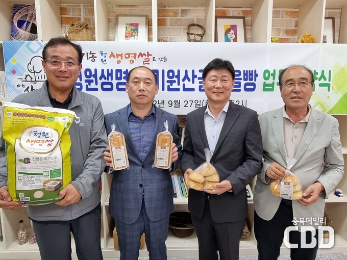 지난 27일 미원산골마을빵 사업장에서 지역 특산빵 브랜드화를 위해 미원산골마을빵과 청원생명농협쌀조합공동사업법인이 업무협약을 체결했다.