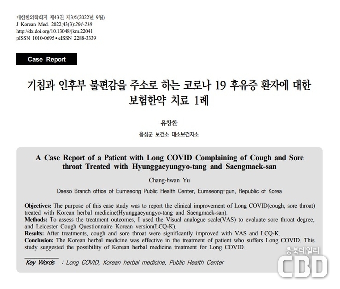 1. 유창환 음성군 공중보건의, 코로나19 증상 호전 보고 논문 대한한의학회지에 실려!