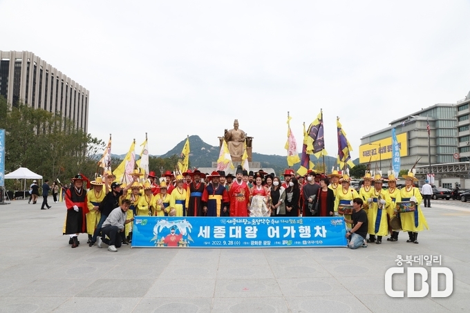 청주시(시장 이범석)와 청주예총(회장 문길곤)은 28일 오전 11시 서울 광화문광장의 세종대왕 동상 앞에서 어가행차 출발을 알리는 퍼포먼스를 개최했다.