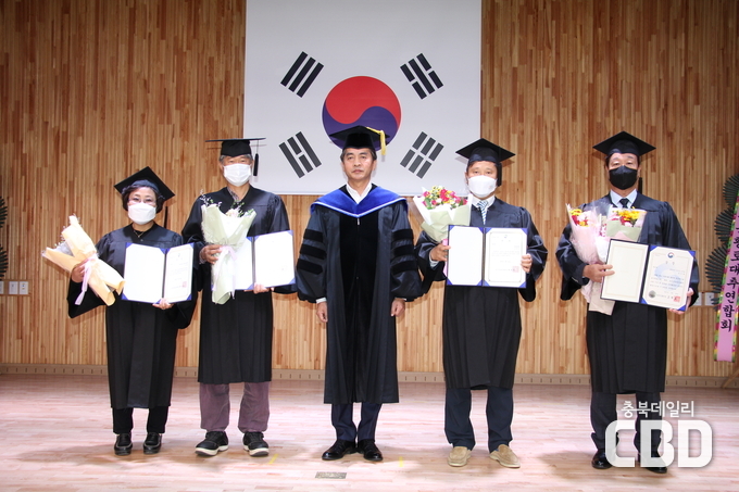이날 졸업식은 최재형 보은군수, 최부림 군의회 의장, 졸업생 등 100명이 참여한 가운데 경과보고, 졸업패 전달, 우수교육생 시상, 축사, 졸업 소감 발표순으로 진행됐다.