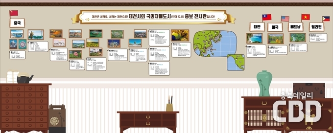 특히 위 홍보관에는 지난해 11월부터 올해 5월까지 세명대 유학생 유치사업인 ‘제천 콘텐츠 공모전’ 의 대상 수상작 언스주 지아위동(贾雨桐)의 그림과 펑저우시 좡커위에(庄稞月)의 영상 등 총 8점이 전시될 예정이다.