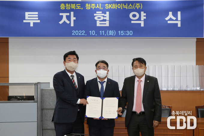 청주시는 11일 충북도청에서 이범석 청주시장, 김영환 충청북도지사, 김동섭 SK하이닉스 대외협력담당 사장이 참석한 가운데 M15X 신규 공장 투자협약식을 가졌다고 밝혔다.
