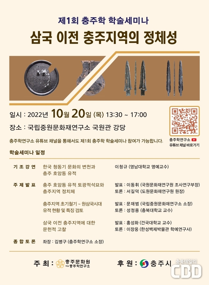 세미나는 이청규 영남대 명예교수, 이동휘 국원문화재연구원 조사연구부장, 문재범 국립중원문화재연구소장의 주제발표에 이어 김병구 충주학연구소장의 진행으로 서길덕 도원문화재연구원 원장, 성정용 충북대학교 교수, 이장웅 한성백제박물관 학예연구사가 주제별 지정토론자로 참여하는 종합토론으로 진행된다.