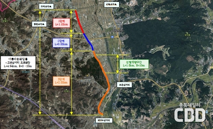 이번 추진 중인 2단계 구간은 장암동 동계에서 남일면 신송리까지 약 880m, 사업비 37억 원 규모로 올해 1월 공사에 착공해 현재 공정률 40%로 진행 중이다.