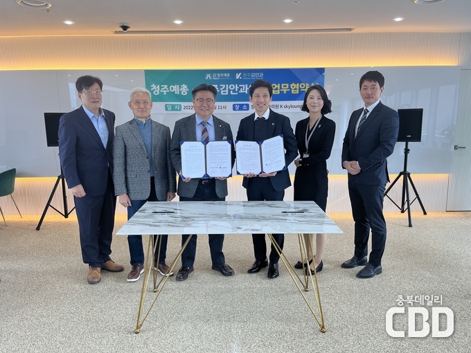(사)청주예총(회장 문길곤)과 청주김안과의원 (대표원장 김두은)은 2022년 10월 21일(금) 오전 11시, 청주김안과의원에서 (사)청주예총 회장, 부회장, 사무국장과 청주김안과의원 이사 및 차장이 참석한 가운데 업무 협약식을 가졌다.