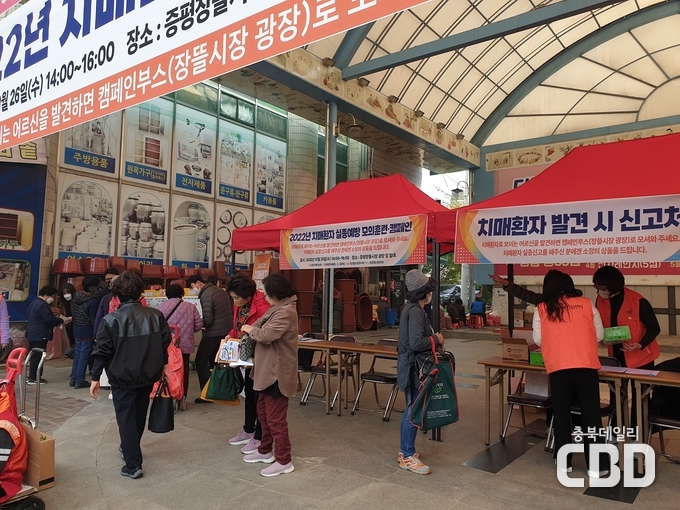 증평군보건소 치매안심센터는 26일 증평장뜰시장 일원에서‘치매환자 실종예방 모의훈련’을 실시했다.