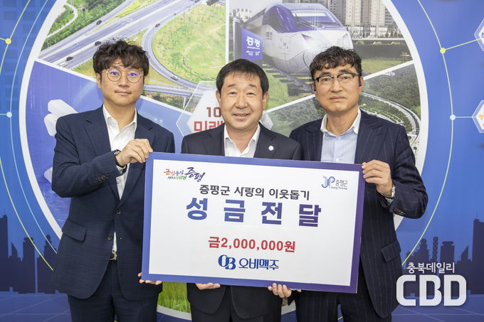 오비맥주 청주지점(지점장 한정규)은 26일 증평군청을 방문해 저소득가구를 위해 사용해달라며 성금 200만 원을 기탁했다.