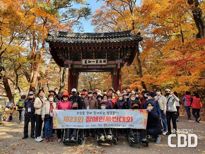 증평군장애인연합회(회장 연영찬)가 주관한 제23회 장애인 등반대회가 28일 보은군 속리산 (세조길)에서 열렸다.