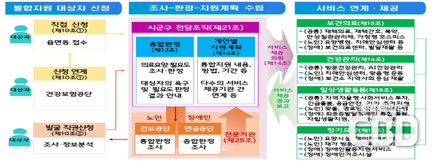 ○ (목 표) 일상생활에 어려움을 겪는 노인, 장애인 등이 살던 곳에서 건강한 생활을 영위하도록 의료‧요양‧돌봄서비스를 통합‧연계하여 제공