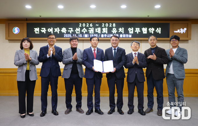 충주시는 대한민국 여자축구를 대표하는 공식 단체인 한국여자축구연맹(회장 양명석)과 업무협약(MOU)을 체결하고, 2026년부터 2028년까지 3년간 ‘전국여자축구선수권대회’를 충주에서 개최하기로 했다고 12일 밝혔다.