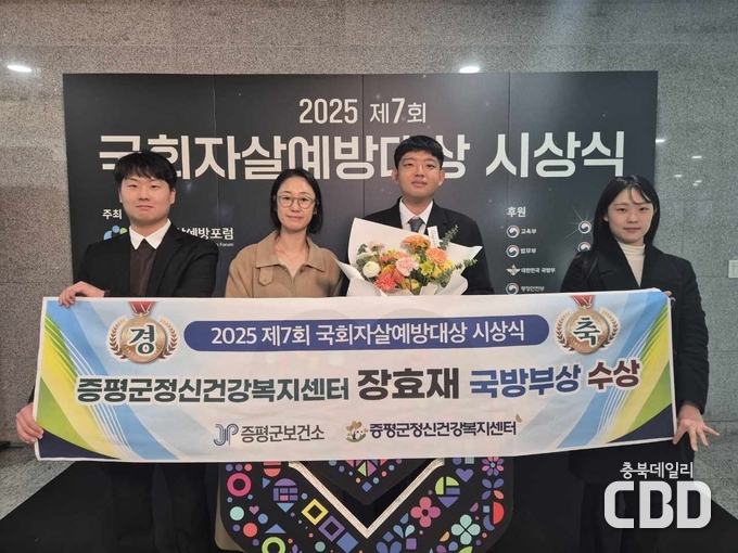 충북 증평군정신건강복지센터 장효재 사회복지사가 ‘2025년 제7회 국회자살예방대상’ 유공자로 선정되는 영예를 안았다.