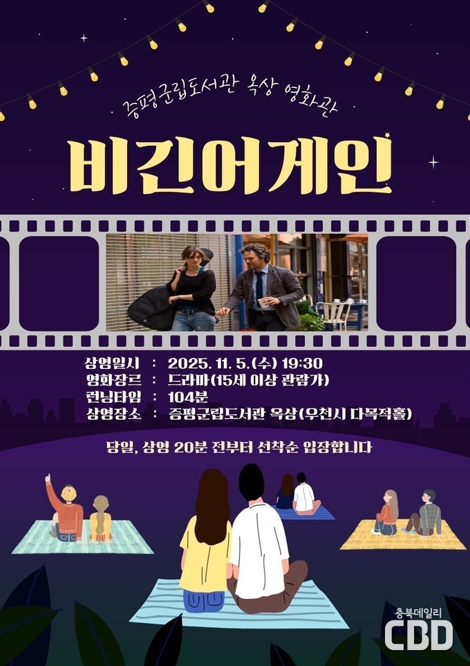 ‘별빛 아래 다시 켜진 스크린’ 증평군립도서관, 5년 만에 옥상 야외영화 상영 (11월 5일 ‘비긴 어게인’...별빛 아래 펼쳐지는 감성 시네마)  |