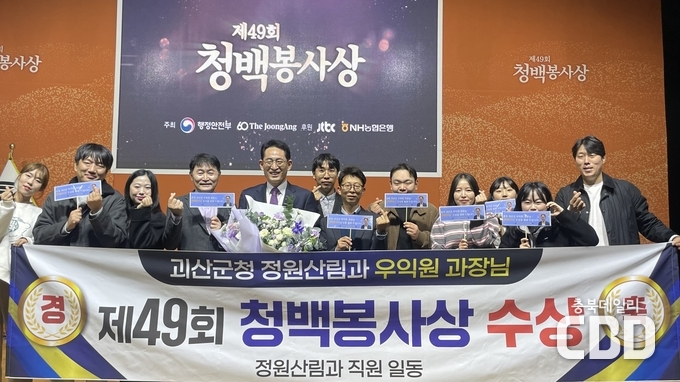 충북 괴산군(군수 송인헌)은 정원산림과 우익원 과장이 서울 상암동 중앙일보 중앙일보홀에서 열린 ‘제49회 청백봉사상’ 시상식에서 본상을 수상했다고 4일 밝혔다.