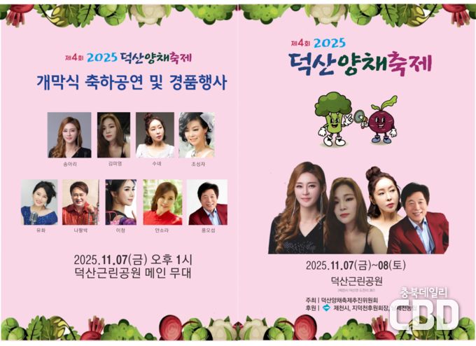 제천시 대표 농산물 “양채”의 우수성을 널리 알리고, 농가 소득 증대 및 지역경제 활성화를 도모하기 위한 2025년 제4회 덕산 양채축제가 오는 11월 7일부터 8일까지 2일간 덕산근린공원(덕산면 도전리 367번지) 일원에서 개최된다.