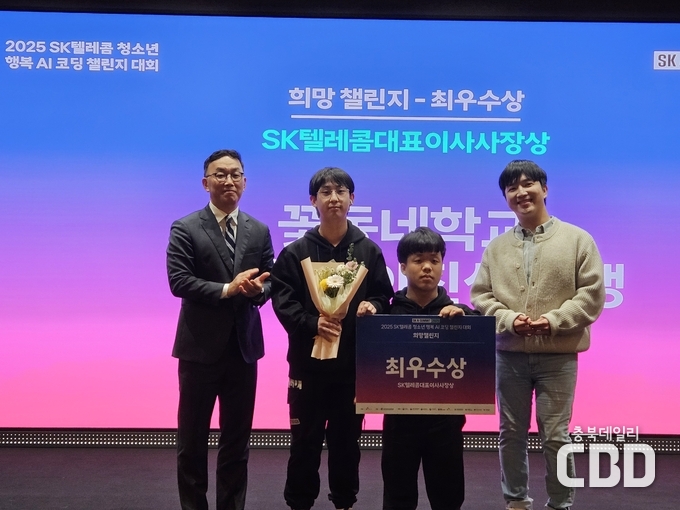 2025 SK텔레콤 청소년 행복 AI 코딩 챌린지 대회 수상자는 ▲이지환(중학교 3학년) ▲이진성(전공과 2학년) 학생으로, 두 학생은 AI를 이용한 영상편집 과제에 도전하는 희망 챌린지 부문의 최우수상을 차지하였다.